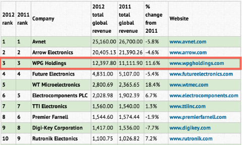 Award | WPG Holdings ranked Worldwide No.3 of TOP 25 Global Electronics Component Distributors in YR2013