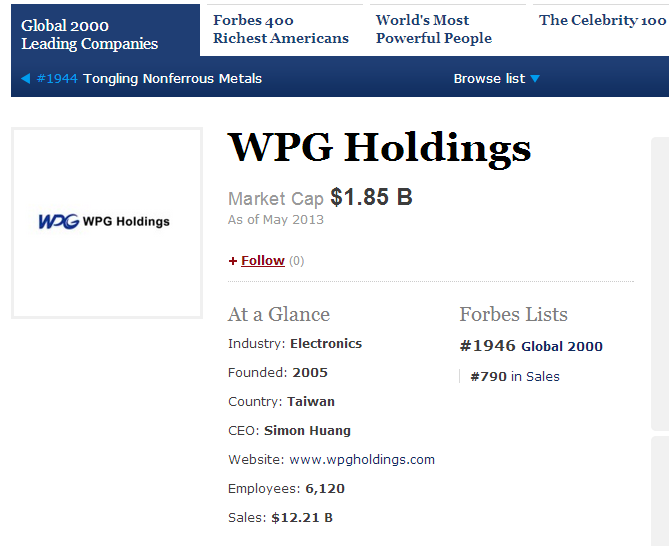 Award | WPG Holdings ranked The Forbes Global 2000 List in 2013