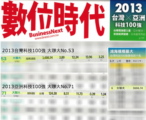 Award | WPG ranked as the Taiwan No. 53 and the Asia No. 71 of Tech. 100 in YR2013
