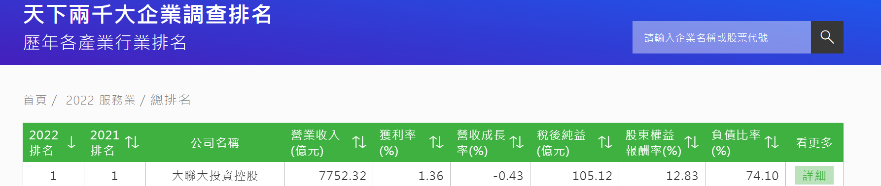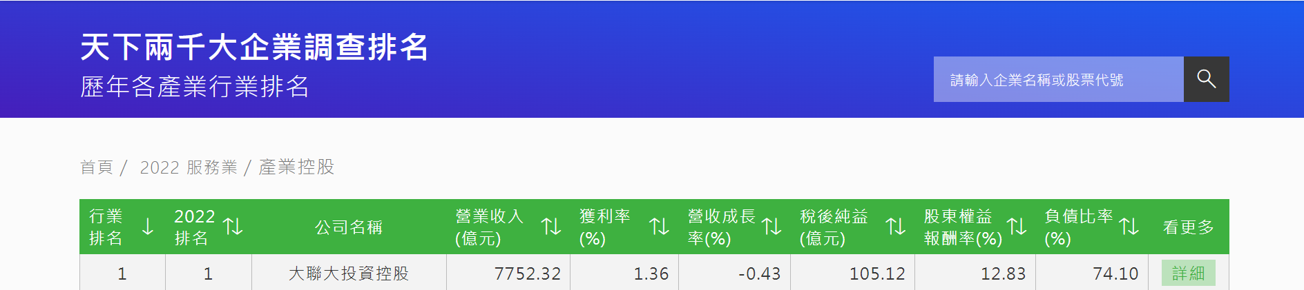 獎項名稱 | 2023台灣媒體【天下雜誌】評選2000大調查產業控股No.1