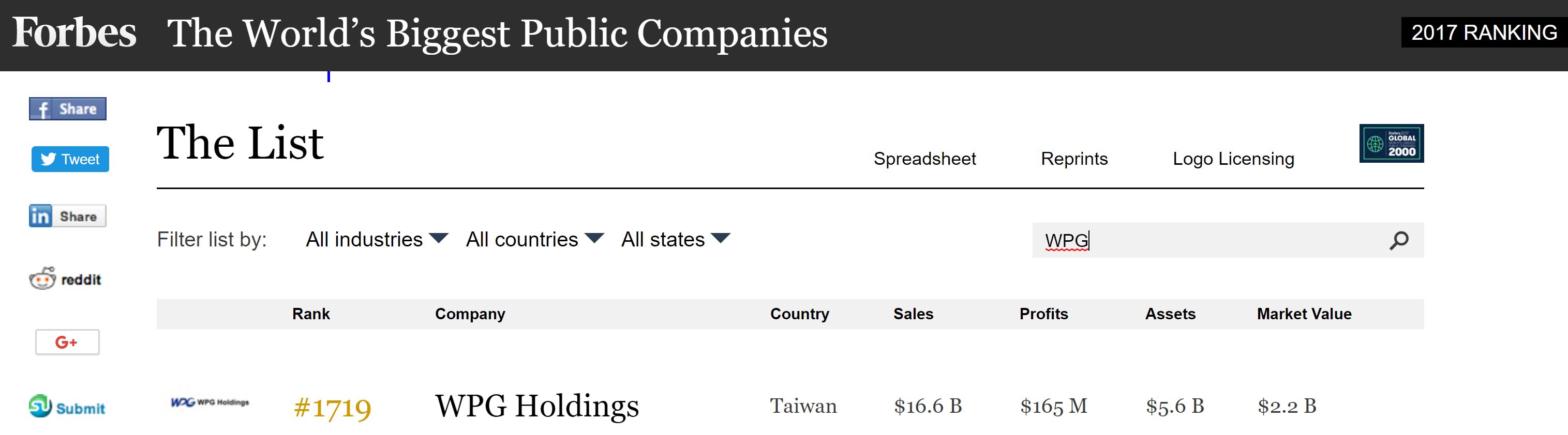 獎項名稱 | 2017年獲選【富比士雜誌】全球2000大企業