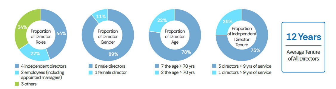 The Company’s Board of Directors re-elected the whole directors on May 31, 2023. 9 directors of 7th Board of Directors (including 4 independent directors). The Board of Directors has convened a total of 12 meetings in 2024. The directors’ attendance rate attained 99.07% (exclusive of the attendance by proxy). According to Article 38 of the Company's Corporate Governance Best Practice Principles: "The in-person attendance rate of all directors of the company shall be at least 80%"” and the interests of directors are avoided in accordance with legal requirements. For more information on the Board of Directors, please refer to the Company's Annual Report.