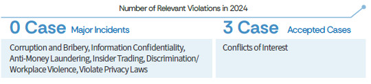 The “Rules for Handling Suggestions and Complaints from Stakeholders” of WPG Holdings expressly state that the Audit Committee shall serve as the supervisory unit for handling stakeholder suggestions and grievances, and that the third party entrusted with the management of the reporting platform shall report to the Audit Committee on a regular basis. The third party entrusted to manage the reporting platform shall regularly report to the Audit Committee on the progress of the handling of the reported cases, or be subject to the investigation and consultation of the Audit Committee whenever deemed necessary. In 2024, apart from three reported conflict of interest cases, no other significant related incidents occurred.