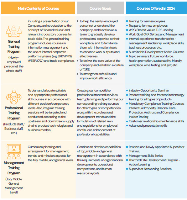 In 2024, WPG Holdings continues to deepen the culture of self-directed learning within the Group, strengthening the development of managerial-level talent, and introducing innovative learning resources to enhance organizational competitiveness comprehensively.