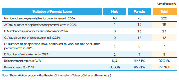 WPG Holdings developed a sustainable workplace and friendly environment, providing labor protection for full-time employees in compliance with various labor laws and regulations, and conducted appropriate physical and mental care programs under available resources. To adapt to the rapidly changing work environment, enhance organizational agility and efficiency, and support employees in achieving better work-life balance, WPG has implemented a remote work policy.