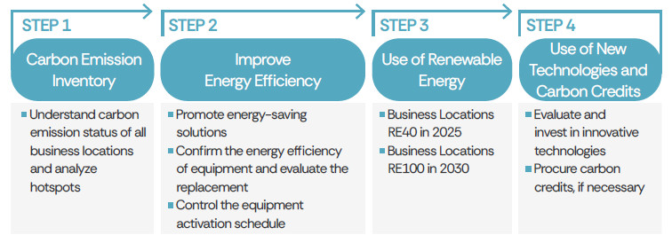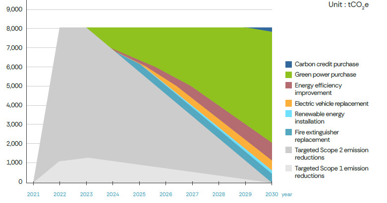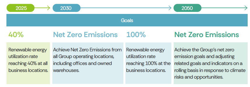 To achieve Group’s Scope 1 and Scope 2 net-zero targets by 2030, the Company convened key operational sites and responsible departments to jointly develop decarbonization plans. Leveraging currently available carbon reduction technologies, the Company formulated actionable strategies and set annual emissions reduction targets. Through clear planning and implementation, the Company aim to systematically reduce overall carbon emissions. Moving forward, the Company will adapt our decarbonization strategies as needed based on actual conditions and regularly track performance to ensure we remain on course to meet goals.