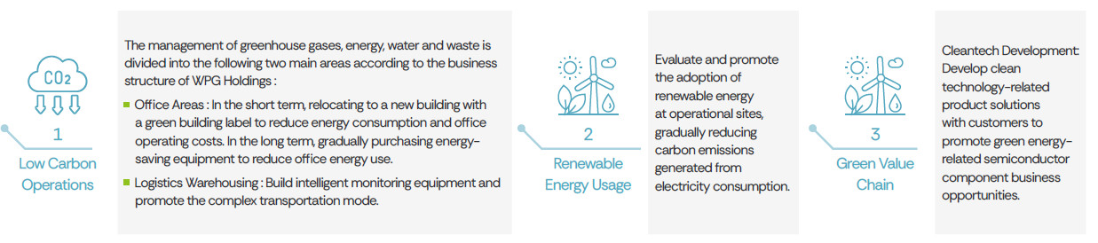 In response to the key risks and opportunities caused by climate change, WPG Holdings has established the following management plans to address the issues of low-carbon operations and promotion of green value chain: