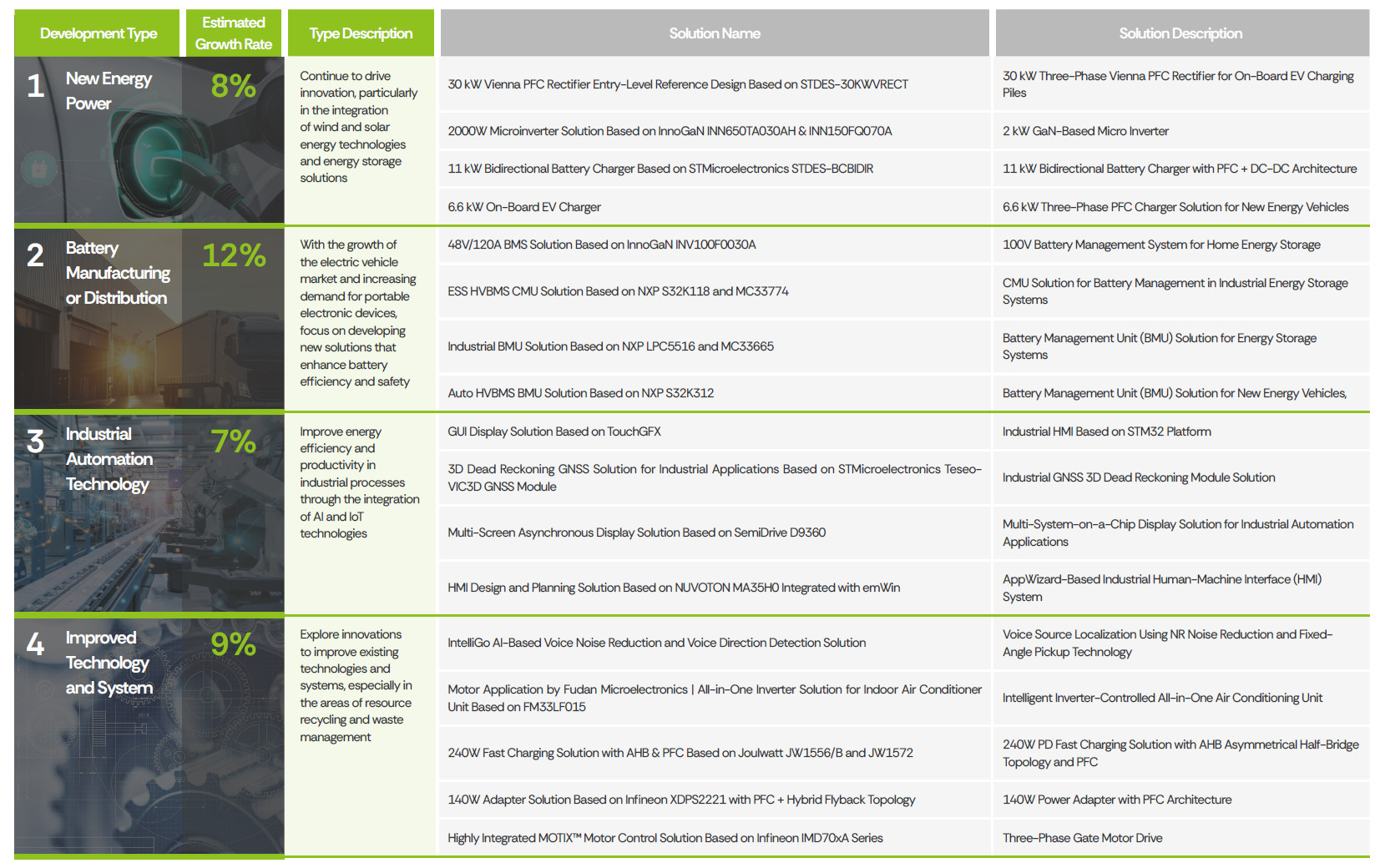 In 2024, WPG Holdings developed and updated a total of 150 clean technology-related solutions, representing a significant increase compared to 137 solutions in 2023. These solutions span a wide range of applications, including new energy development, battery manufacturing or transportation, industrial automation technology production or transportation, smart metering device manufacturing or transportation, LED lighting development or transportation, traditional pollution control development and transportation, and technological system improvement and development or transportation.