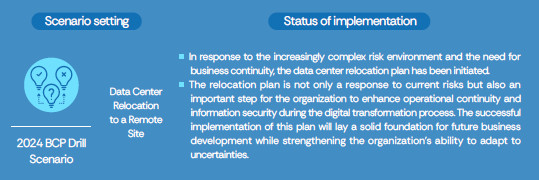 WPG Holdings implements the business continuity plan, (BCP) so that when the system is abnormal and cannot provide the services as per usual, all system services can be switched to the backup data center to respond quickly and effectively, to avoid system service interruption and lead to the malfunction of the company. WPG Holding conducts tests and reviews at least once a year, and amendments if necessary.