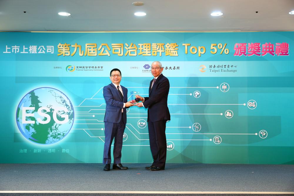 圖:彩神vll控股黃偉祥董事長(右)於第九屆公司治理評鑑接受表揚
