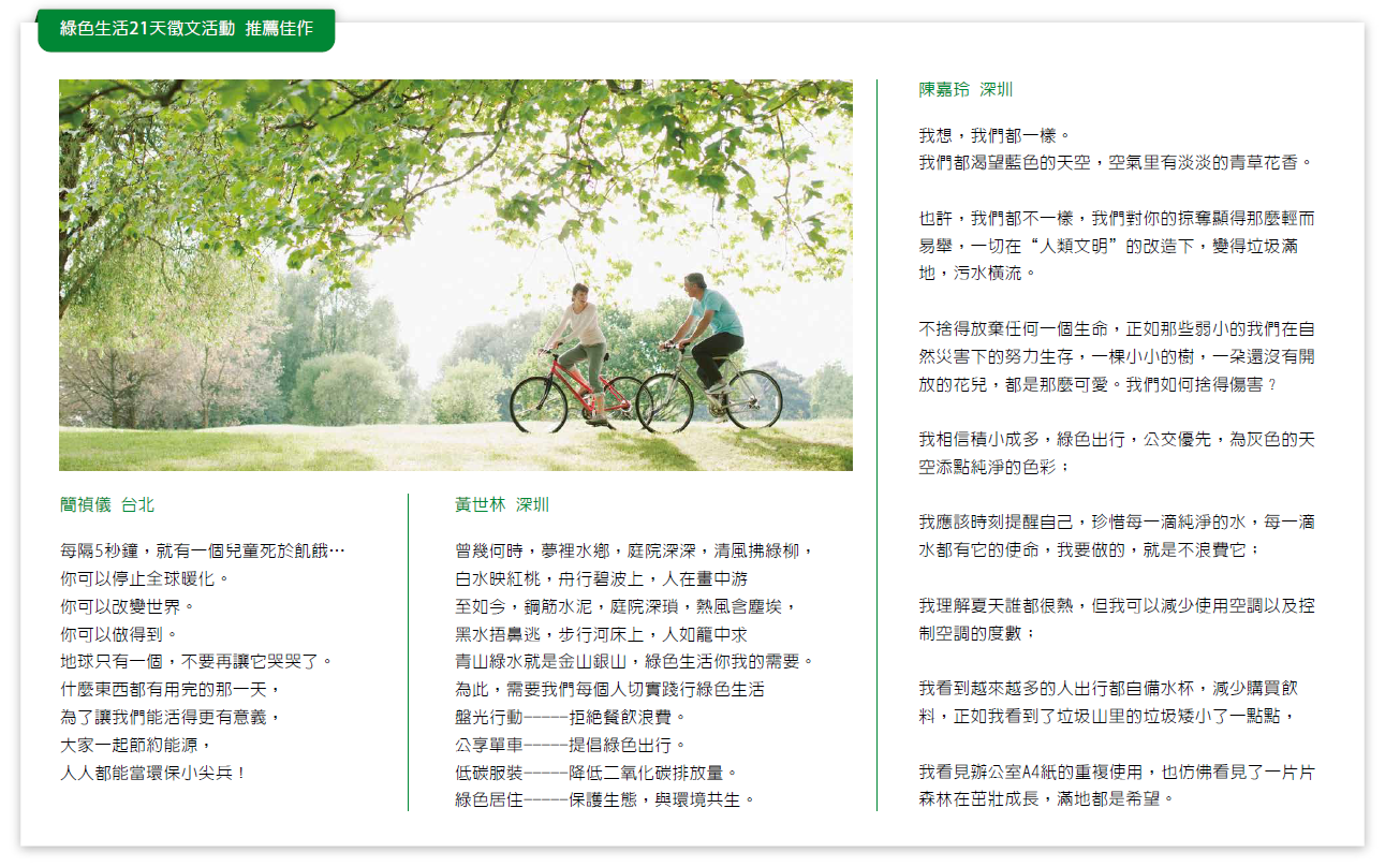 2017.07 綠色生活21天徵文活動佳作分享