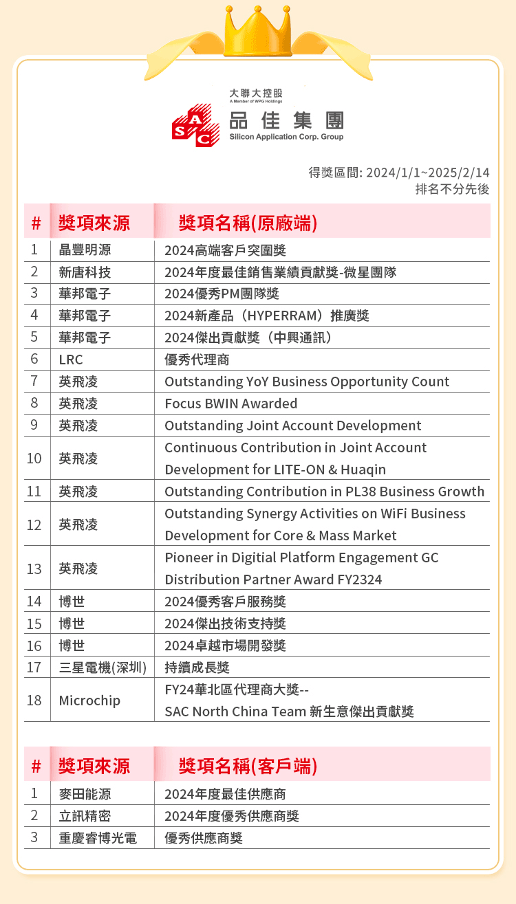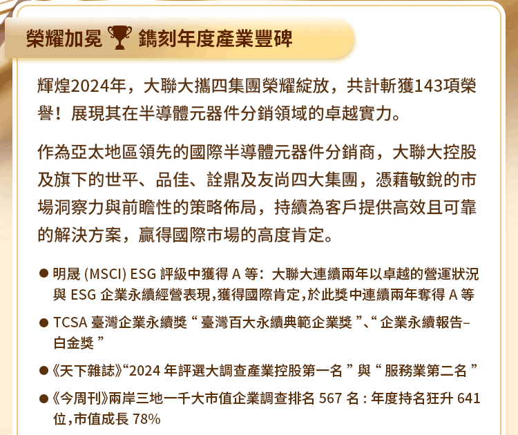 2024 年度 大联大荣誉榜~榮譽綻放,鐫刻年度產業豐碑