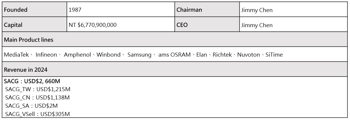 SAC Group was founded in 1987, a member of WPG Holdings with headquarter in Taiwan. We employ around 660 peoples incorporated by Taiwan, China, South Asian. SAC Group, is dedicated to be a professional Distributor for IC industry with revenue nearly US$2.660B in 2024.